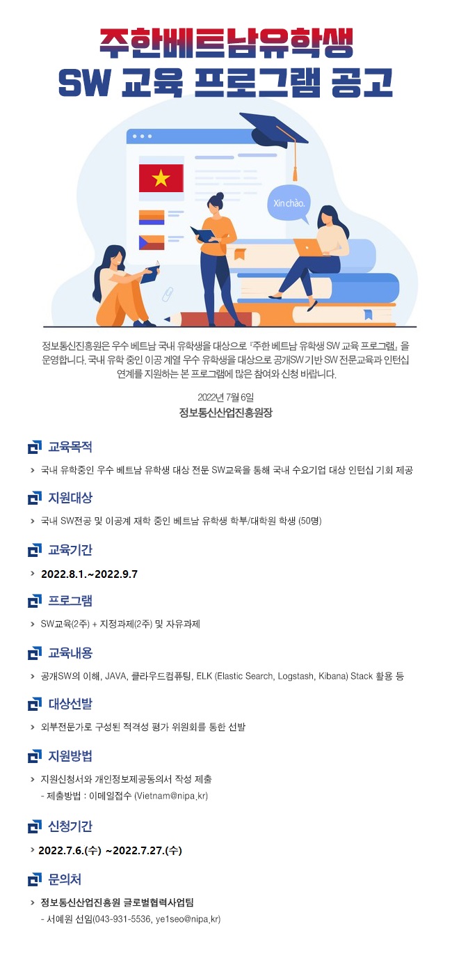 - [취업 및 진로] 주한 베트남 유학생 SW인력양성 교육 안내