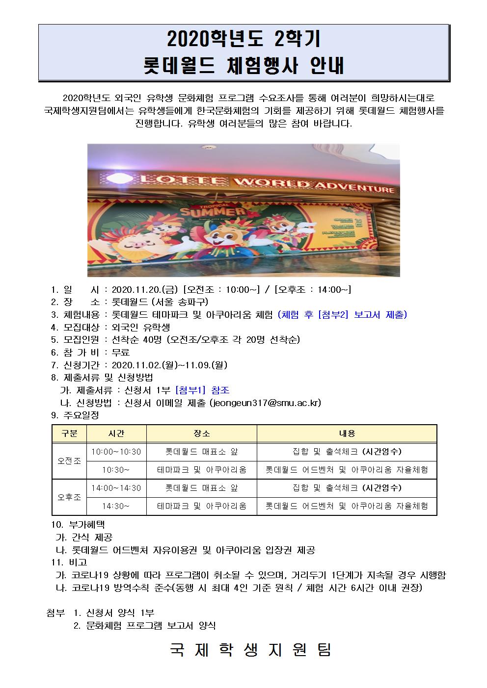 - [학사] 2020학년도 2학기 롯데월드 체험프로그램 참가자 모집